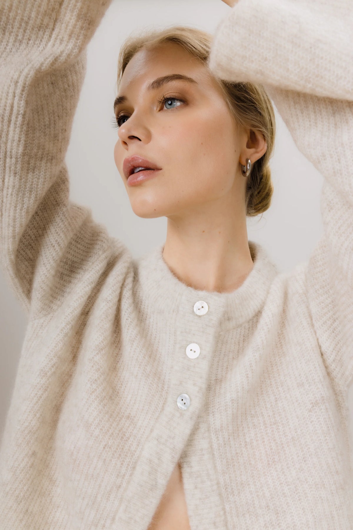 Materiale: 33% Mohair, 33% Ull, 28% Nylon og 6% Spandex.