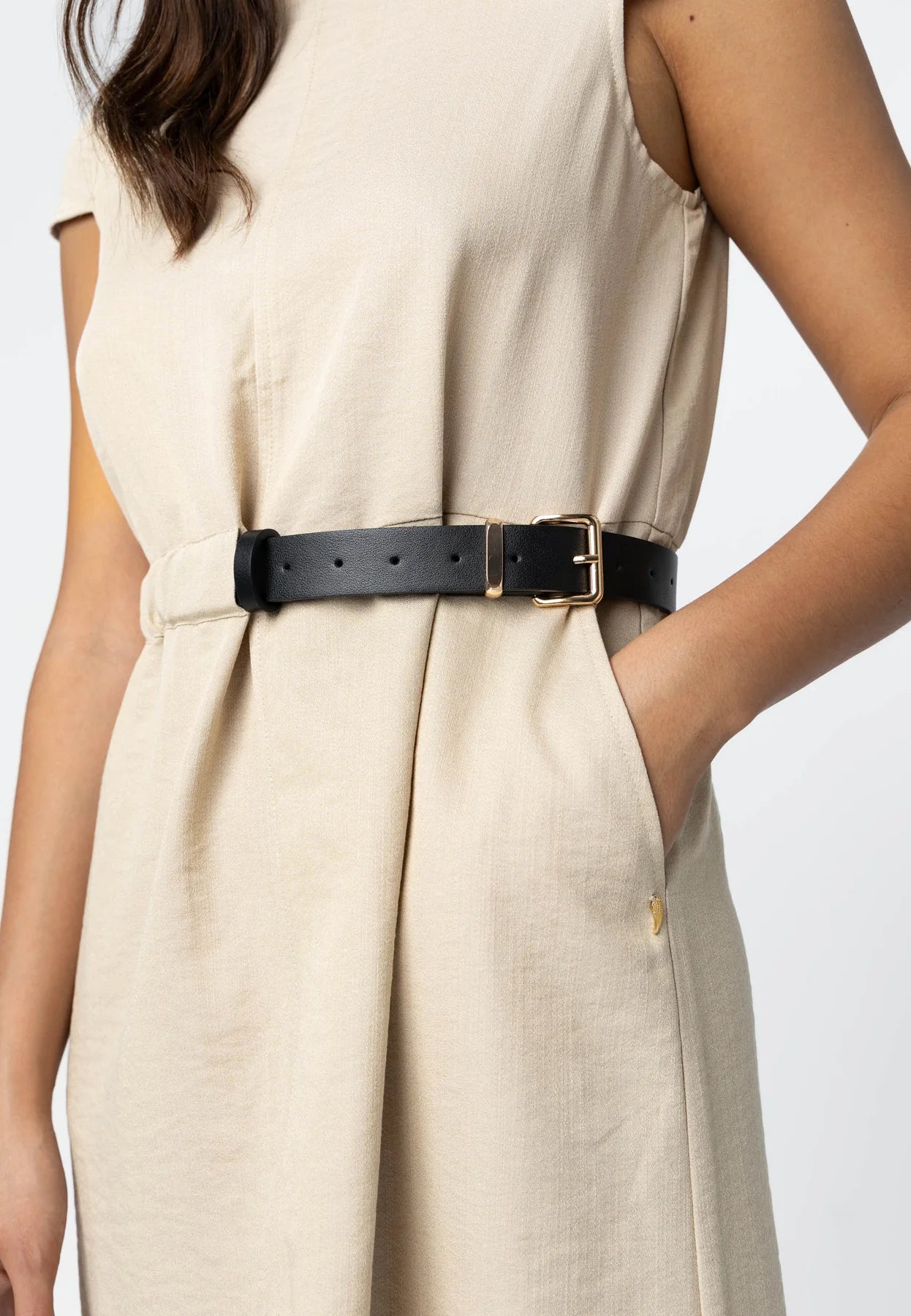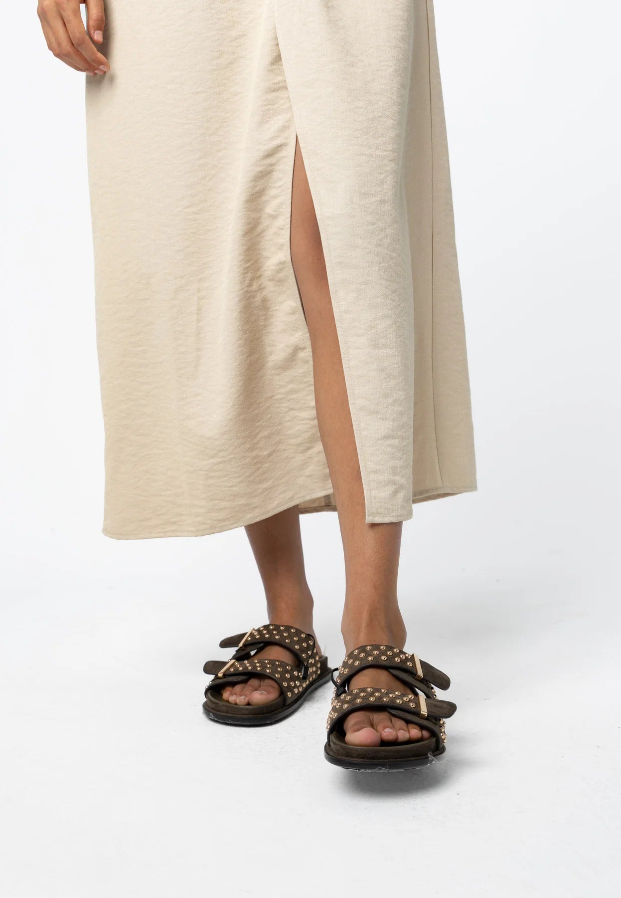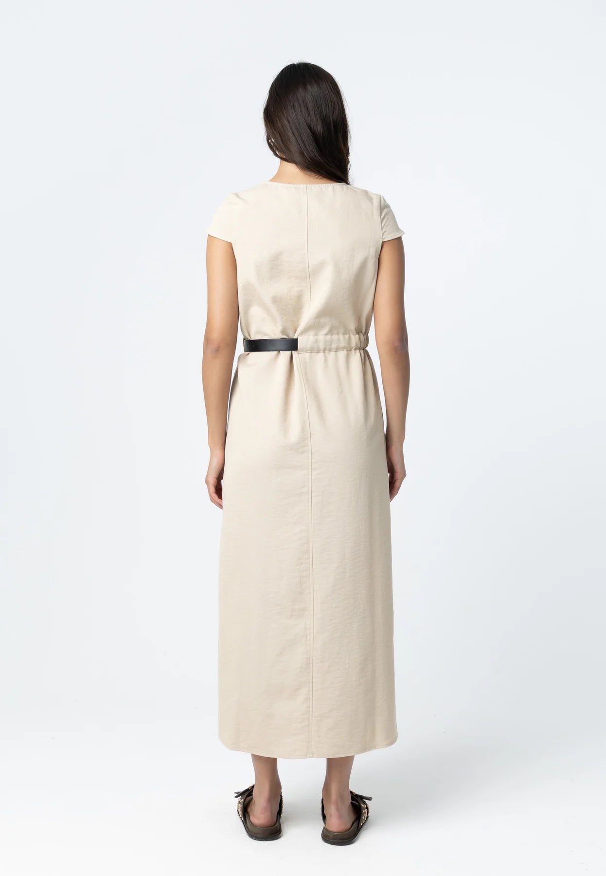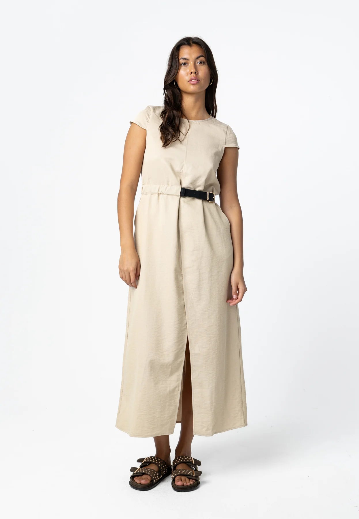 Kjole fra Coster Copenhagen med middels lengde. Modellen er 173 cm høy og bruker størrelse S.