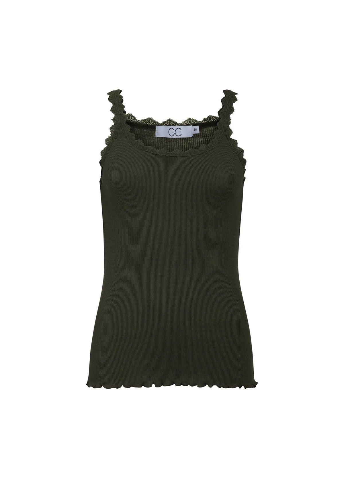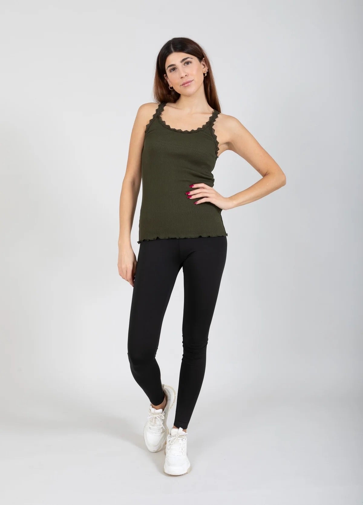 En vakker topp med en komfortabel, tettsittende passform og subtile detaljer, som blondestropper. Kan brukes under en genser eller en jakke, men også bare som topp.