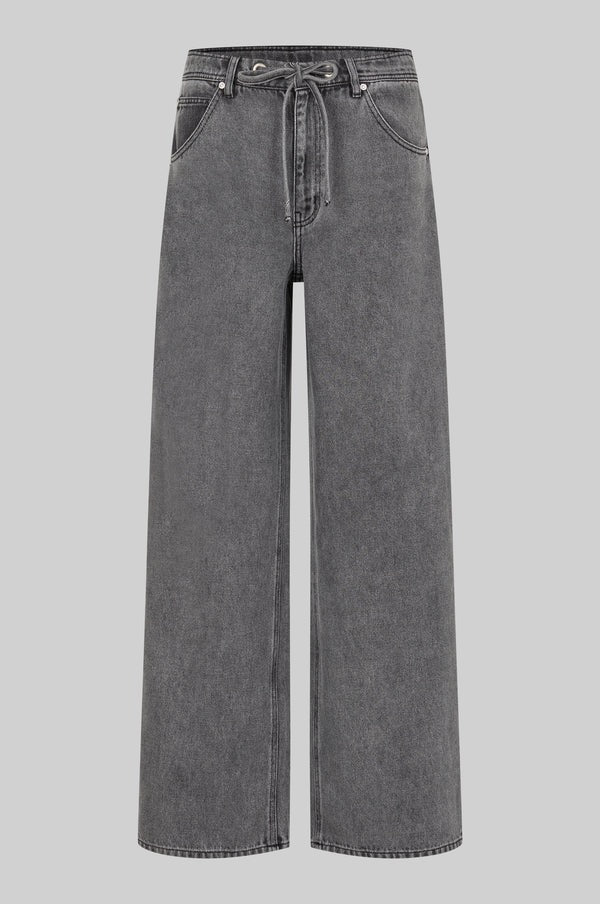 Second Female-jeans med belte. Jeansene er laget av myk, fallende lyocell. Med skjult glidelås og knapp foran og snøring med knyting i midjen. Femlommersmodell. Medium midje med løse, rette ben. Laget av: 100 % lyocell