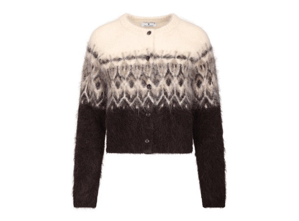 Denne lodne jacquard-cardiganen er designet i vår utsøkte alpakkablanding,