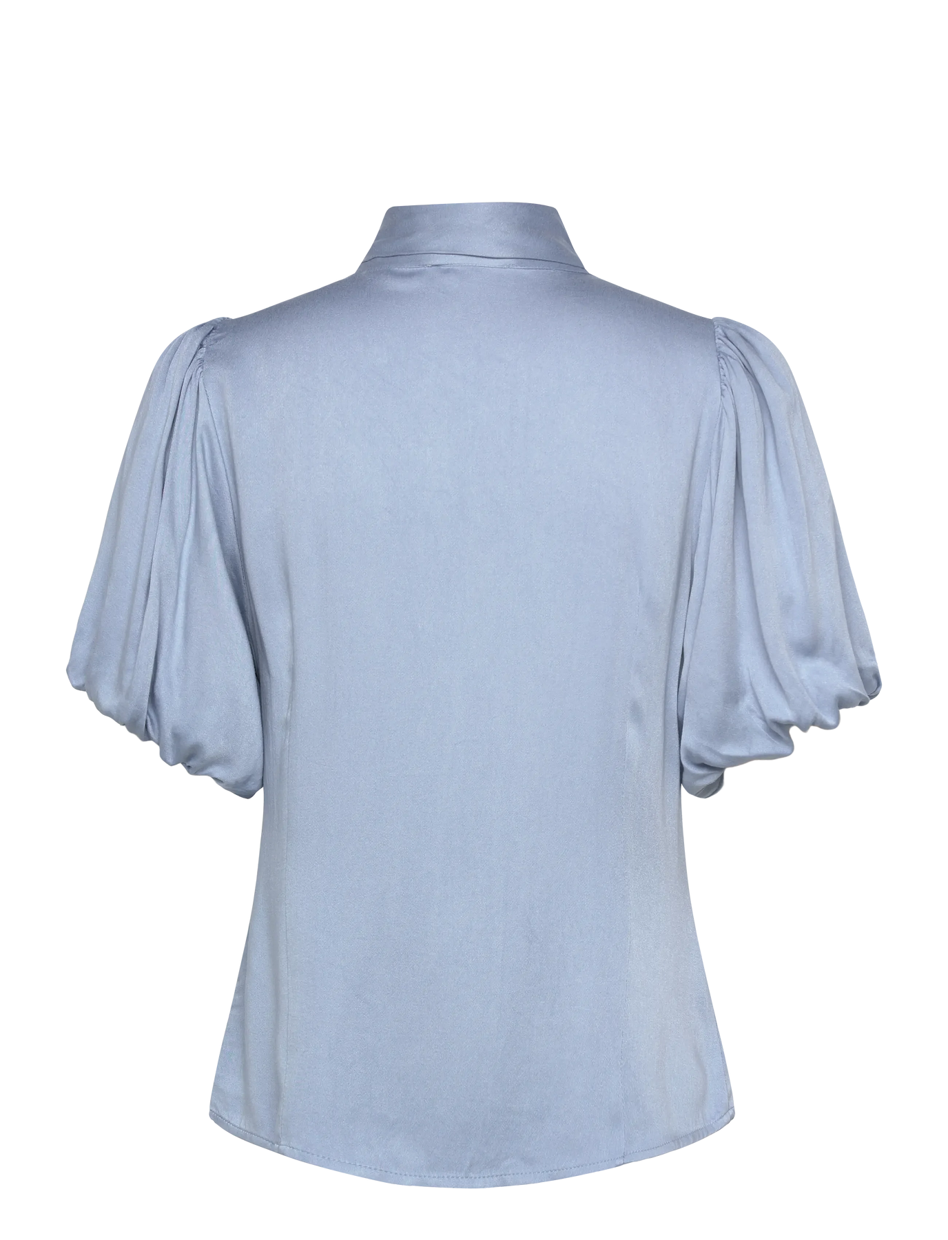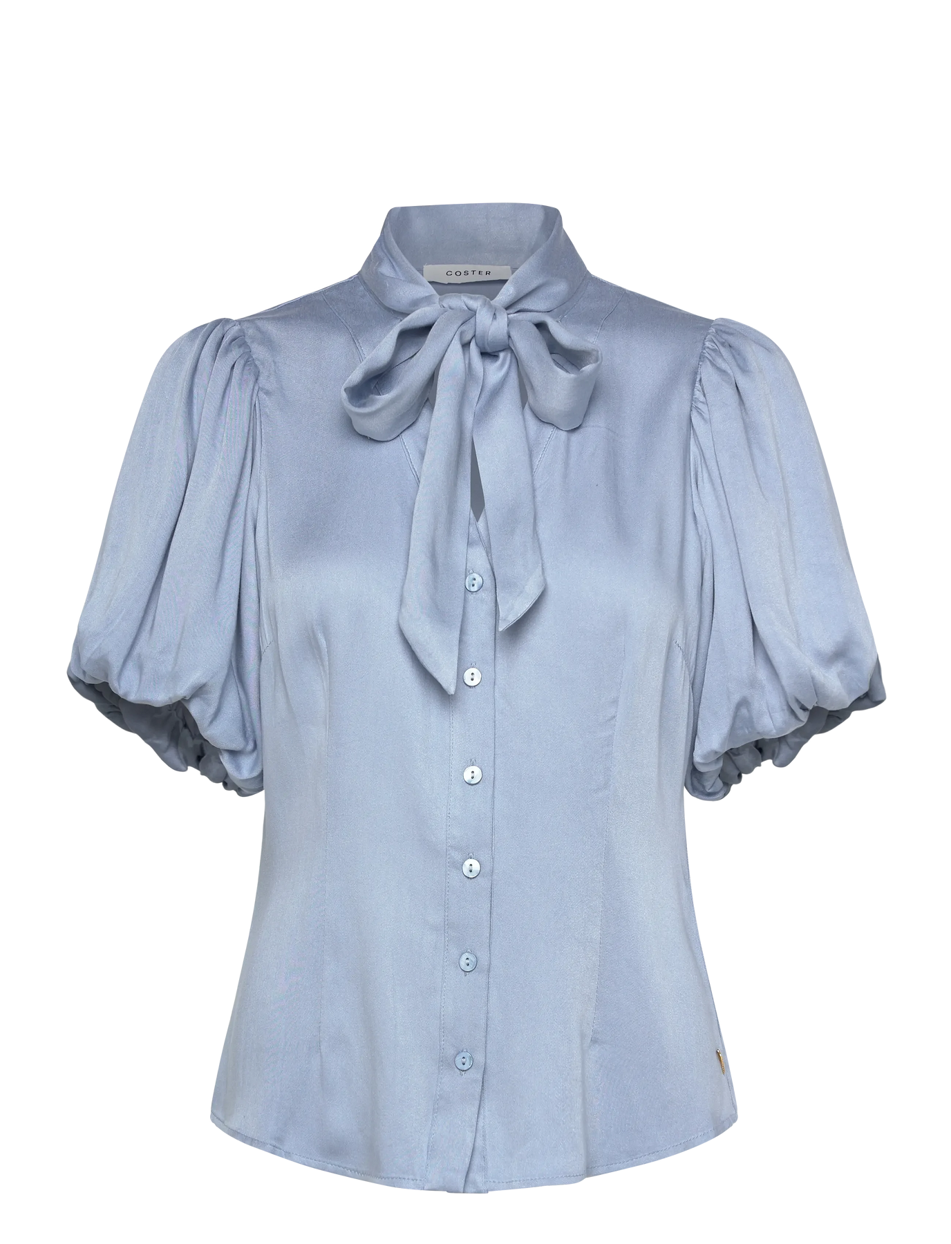 Elegant bluse med voluminøse ermer og en båndkrage. Et tettsittende design med knapper foran.