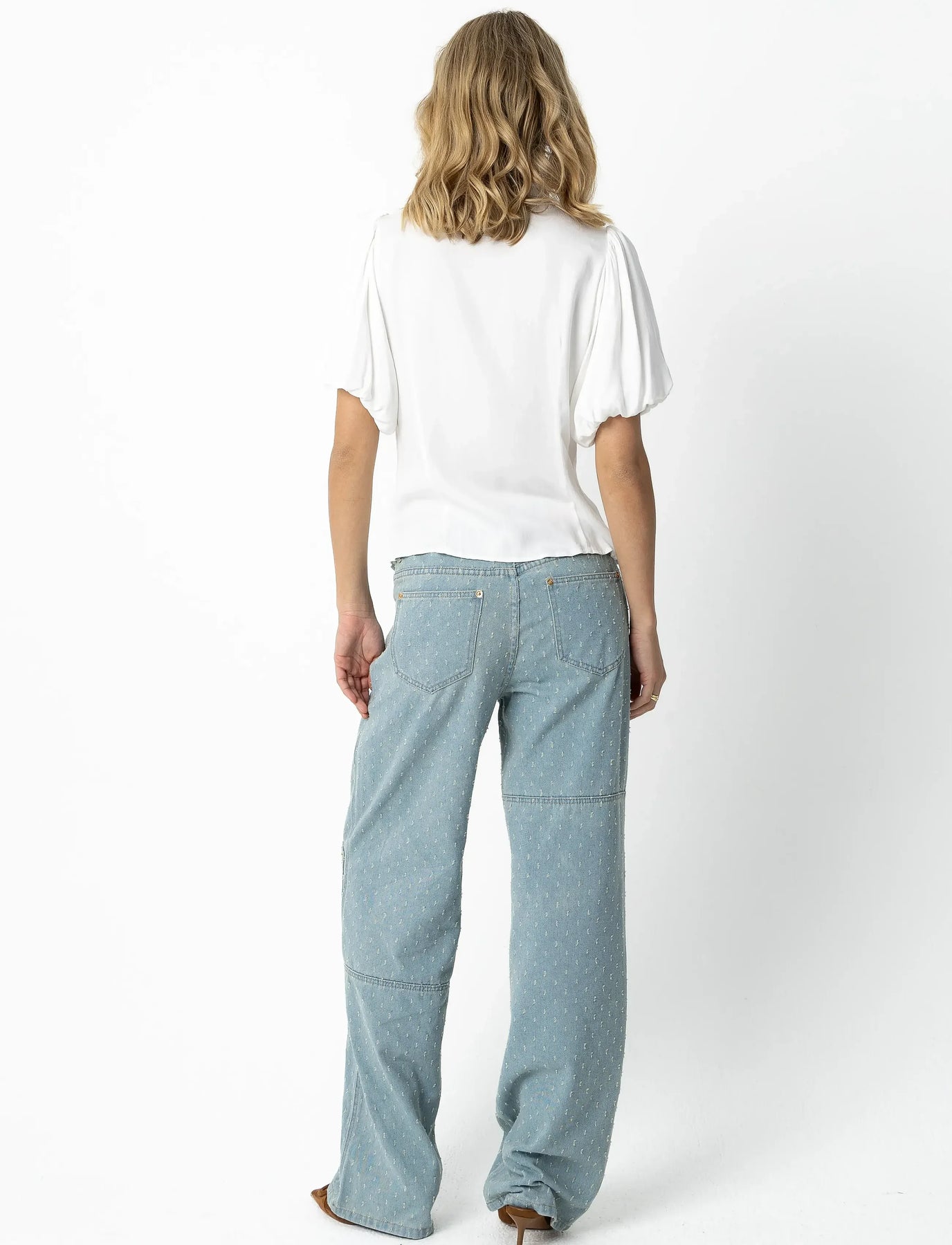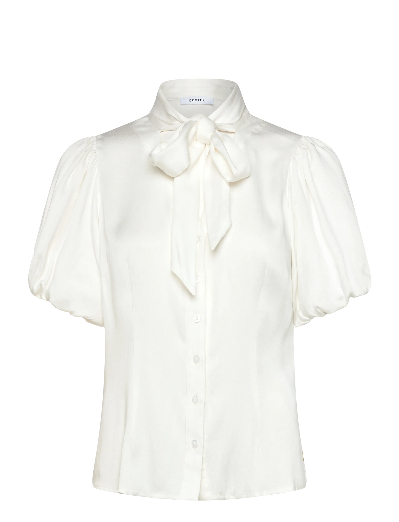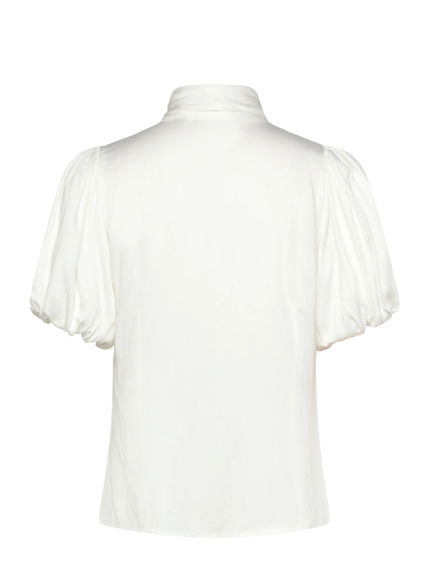 Elegant bluse med voluminøse ermer og en båndkrage. Et tettsittende design med knapper foran.