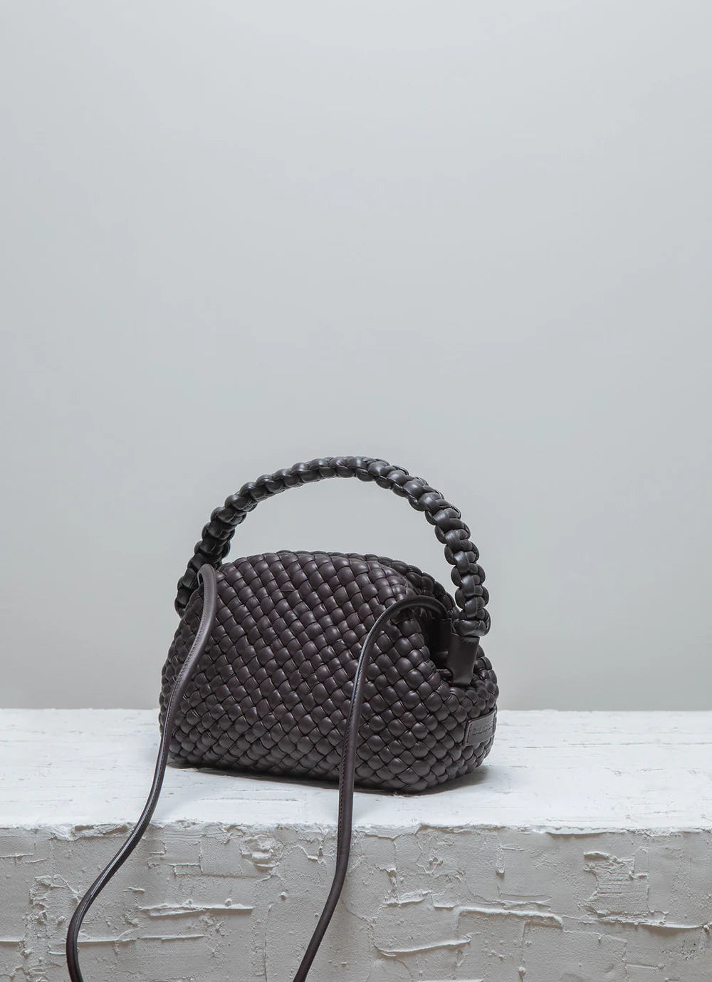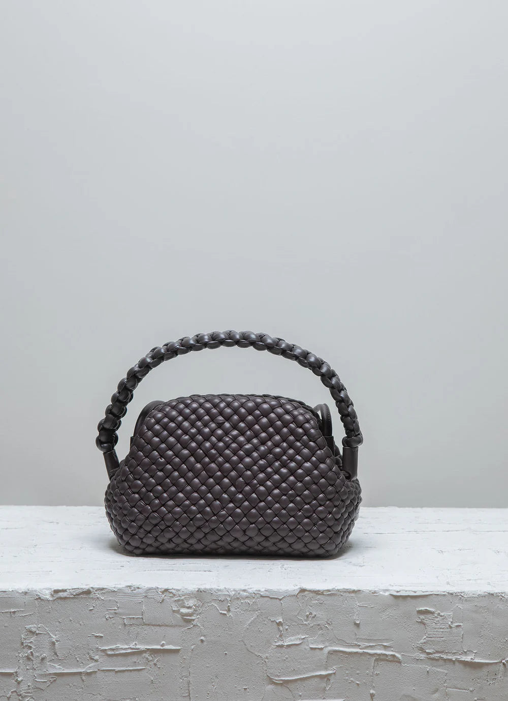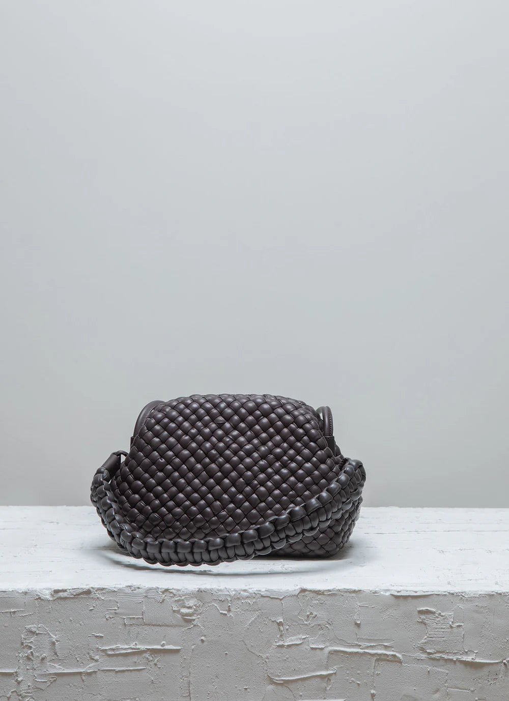 Hana-clutch er en sann favoritt, en myk, flettet og skulpturell clutch. Håndlaget av mykt kalveskinn og fôret med bomullskanvas. Den har en elegant buet innfatning med magnetisk lukking. Kle clutchen opp eller ned, avhengig av anledningen.