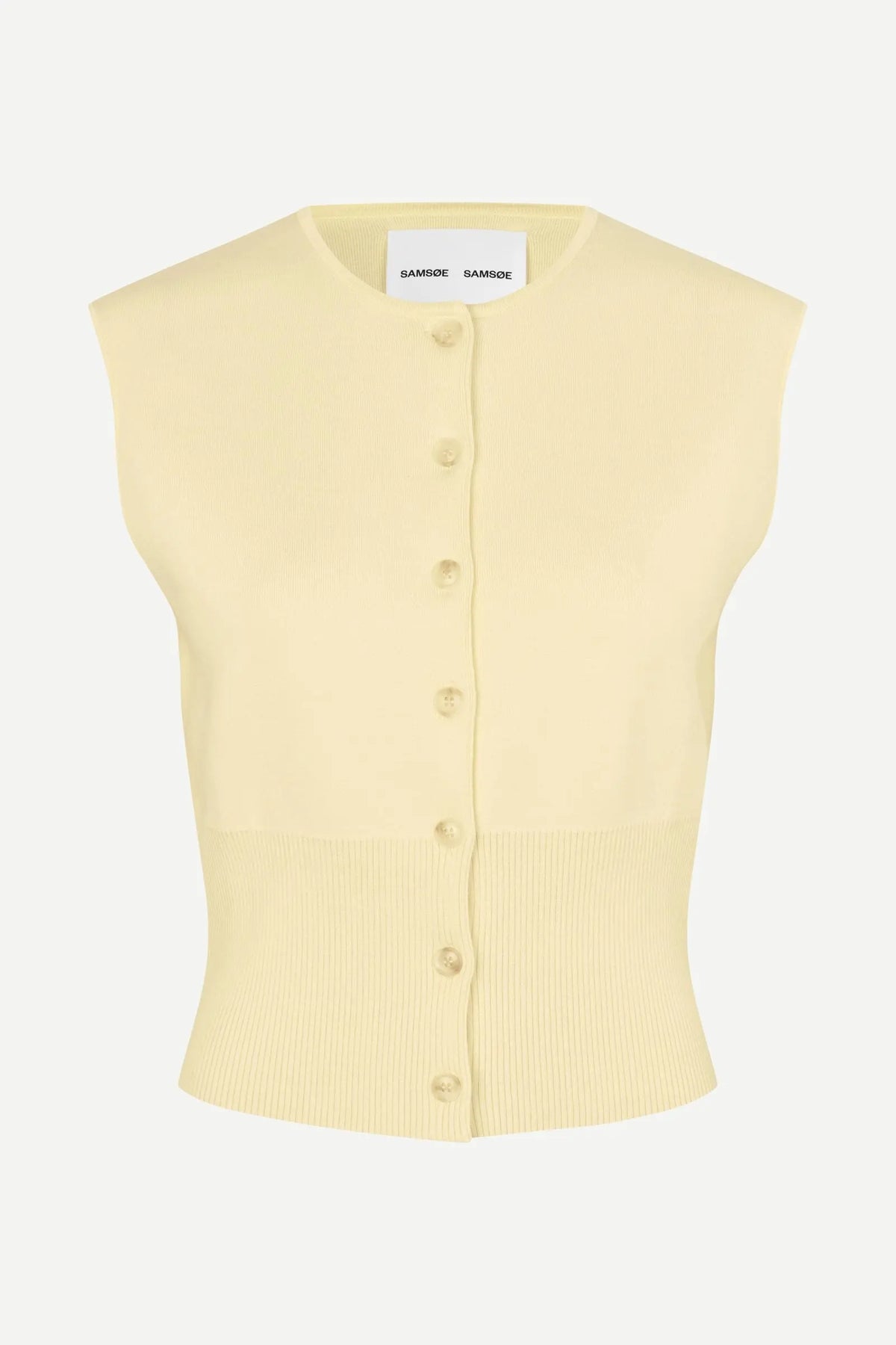 Genservest med vanlig passform. Knappelukking foran. Ribbestrikket kant. Rund hals. Hovedmateriale laget av en elastisk blanding, inkludert LENZING™ ECOVERO™ viskose.