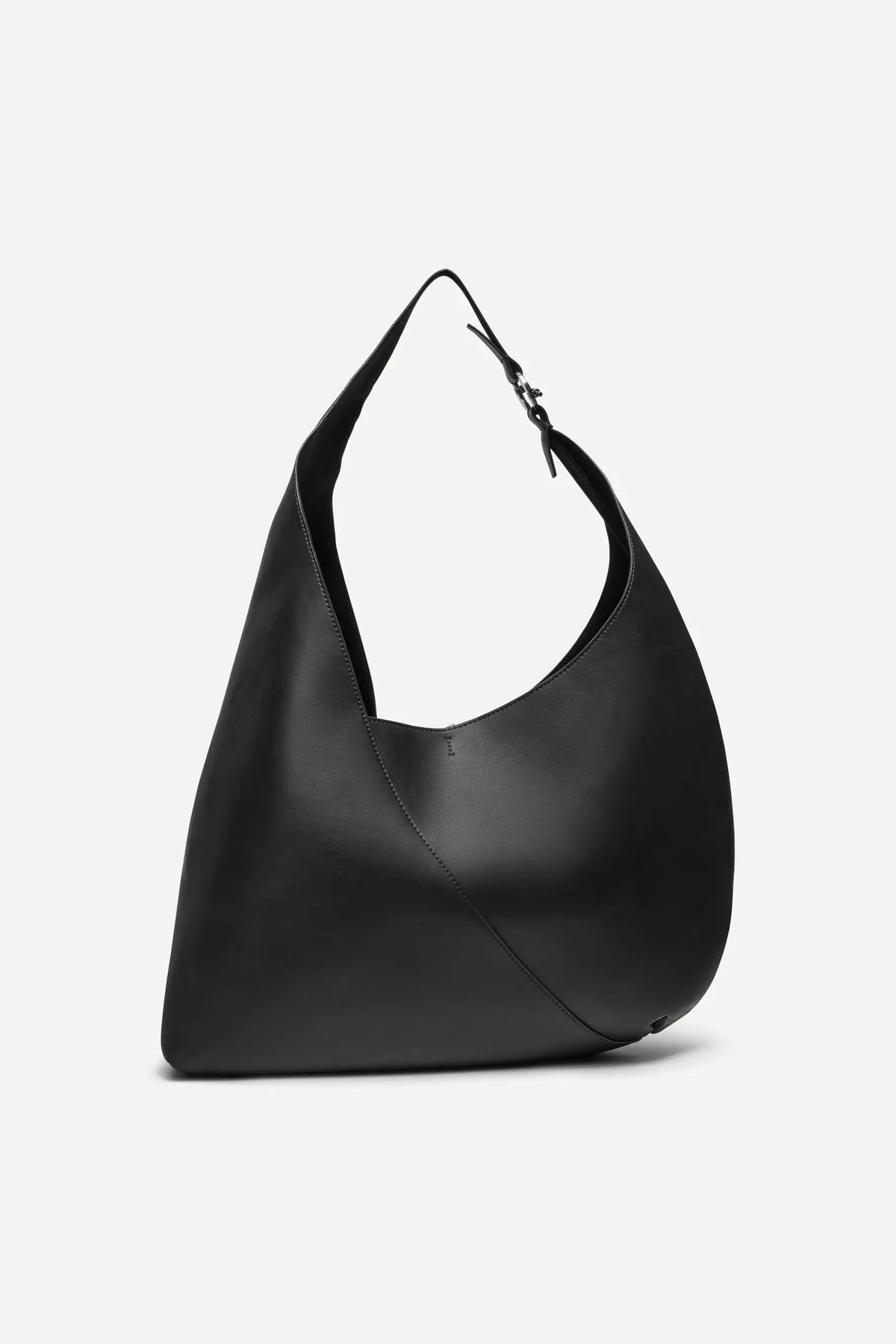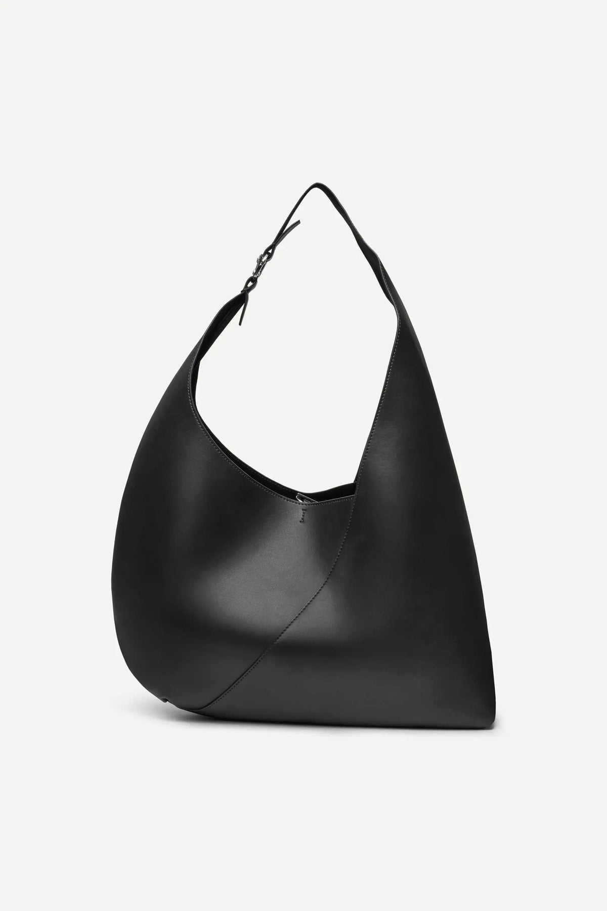 Skulderveske med buet skulderrem. Stanglukking på innsiden. Metalldetaljer formet som det ikoniske ø-et på skulderremmen. Lomme med logo på innsiden. Sølvfarget detaljer.